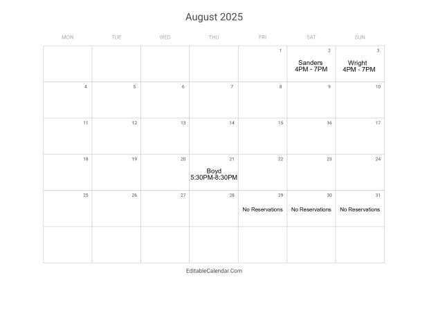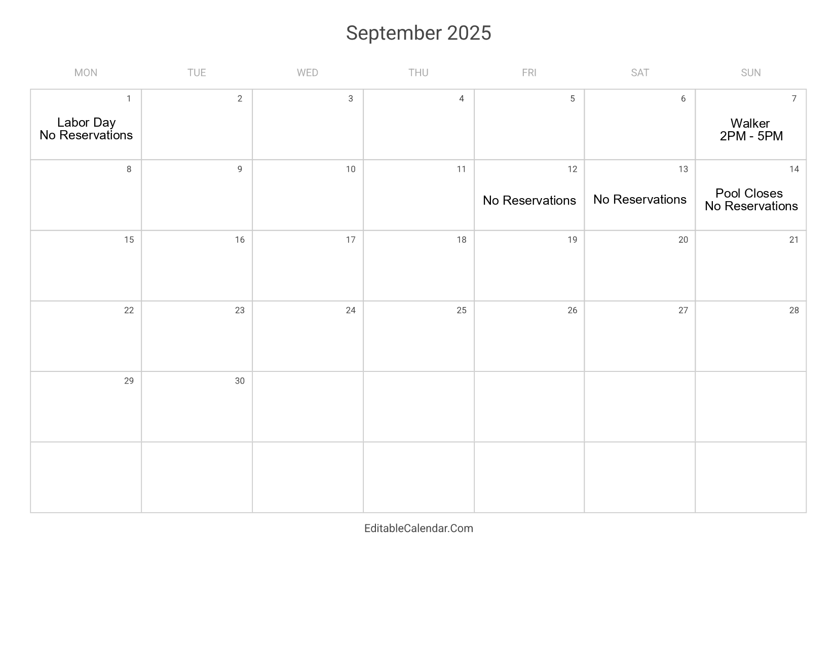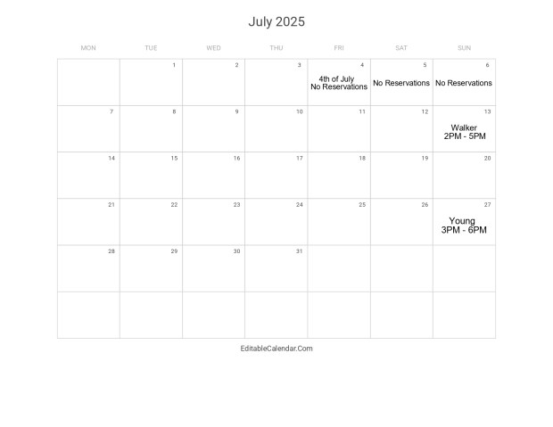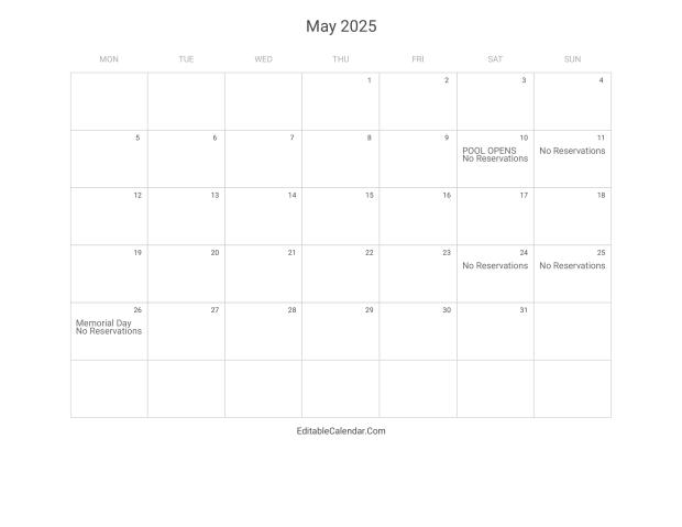 POOL PARTY CALENDAR RESERVATIONS
