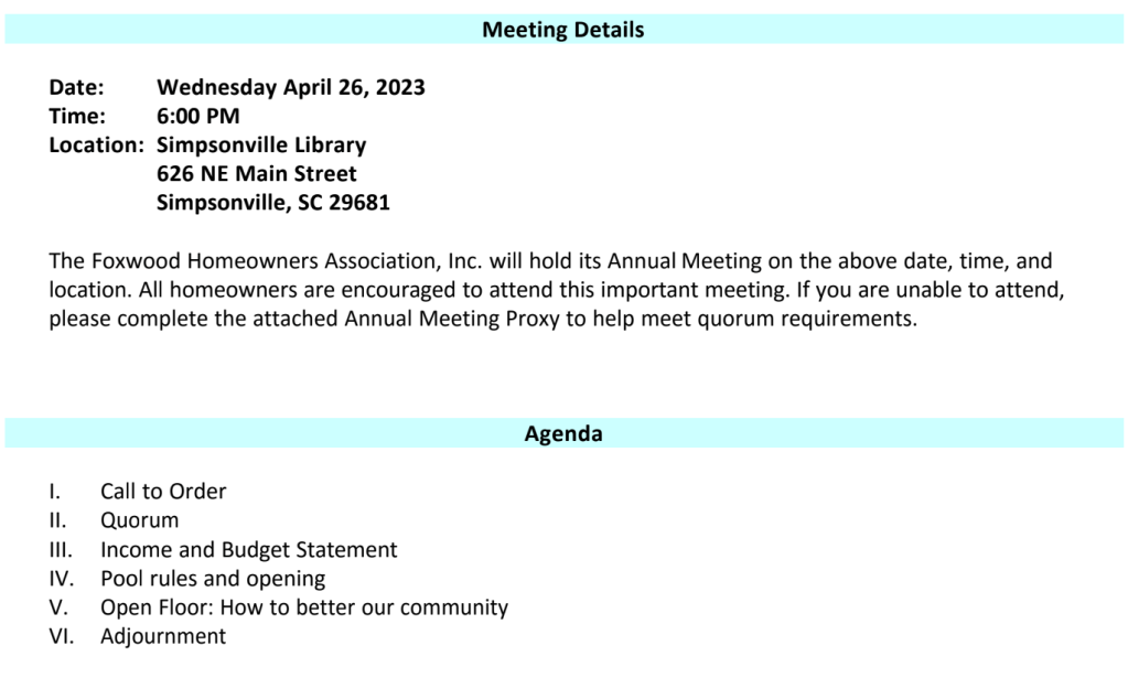 Annual HOA Meeting